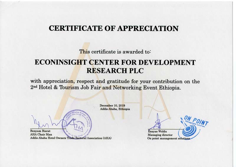 Our researchers have also published several articles in peer-reviewed journals and retain strong links with academic institutions both within Ethiopia and abroad. EconInsight also has a strong team of administrative and support staff who had many years of project management experience in public research institutes and private consultancy firms. We also rely on a strong pool of enumerators, field supervisors and research assistances with more than a decade of field work experience in both urban and rural areas throughout the country.